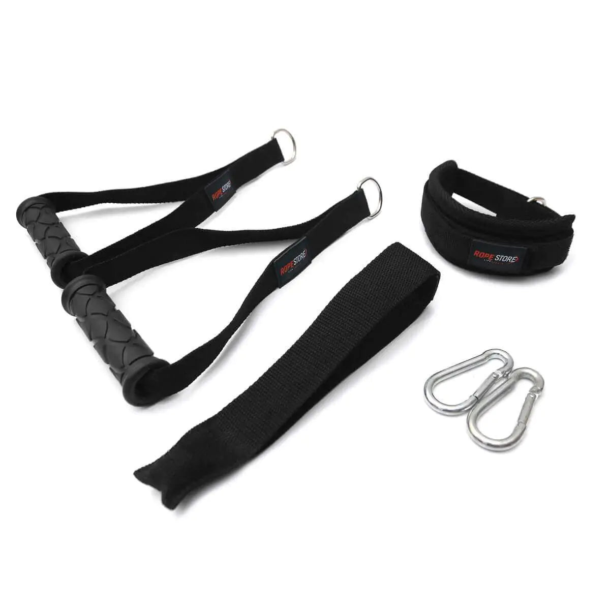 Kit completo de elásticos para trabalhar completamente os músculos de diversas regiões do corpo. O equipamento é resistente e permite um treino funcional e com menos impactos para o usuário auxiliar nos resultados.