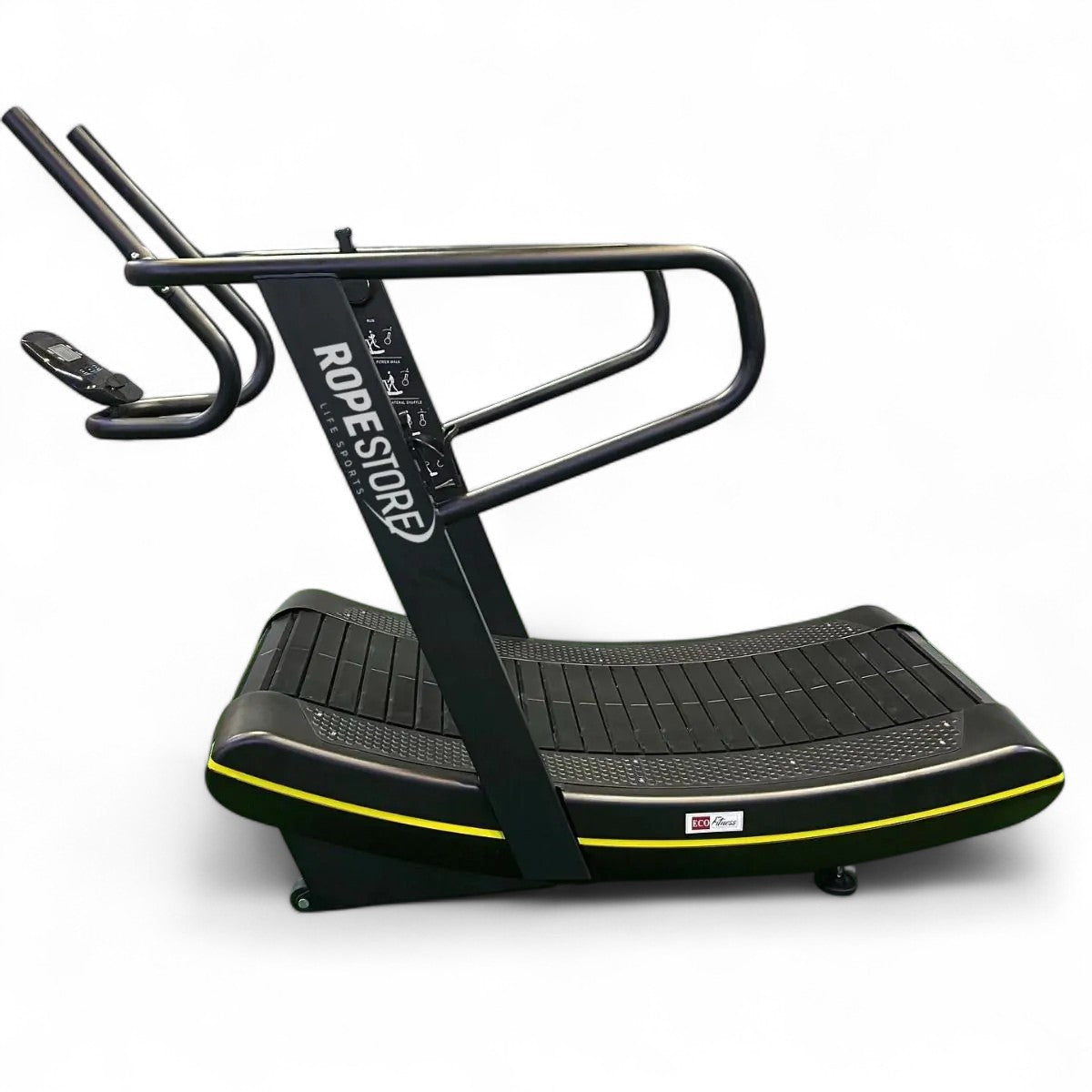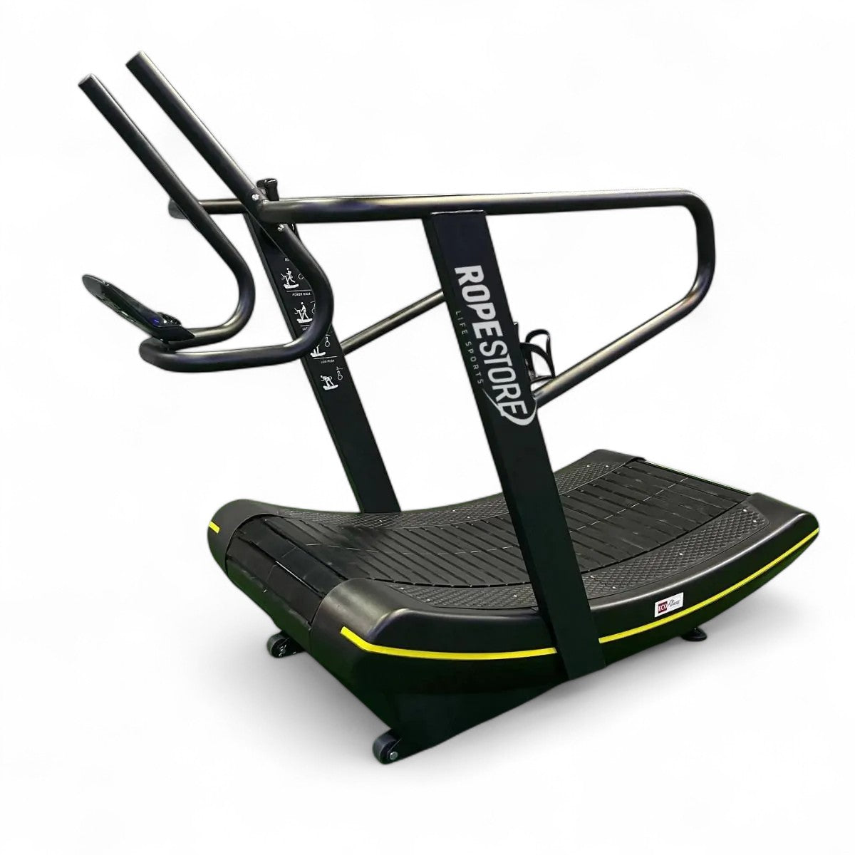 Esteira de tração curved sem motor, este tipo de equipamento são ótimos para você correr quando o tempo está ruim ou você está com pouco tempo, “O que torna diferente em comparação com uma esteira comum”? A Esteira de tração curved sem motor é totalmente alimentado por você. Em uma esteira tradicional você define a velocidade e mantém o ritmo. Na esteira de tração curved Rope Store , você define a resistência da correia, mas o ritmo é determinado pelo comprimento da passada, frequência da passada, cadência e muito mais. Ele também vem com uma série de recursos e opções de treinamento que diversifica bastante sua aplicação e utilidade.