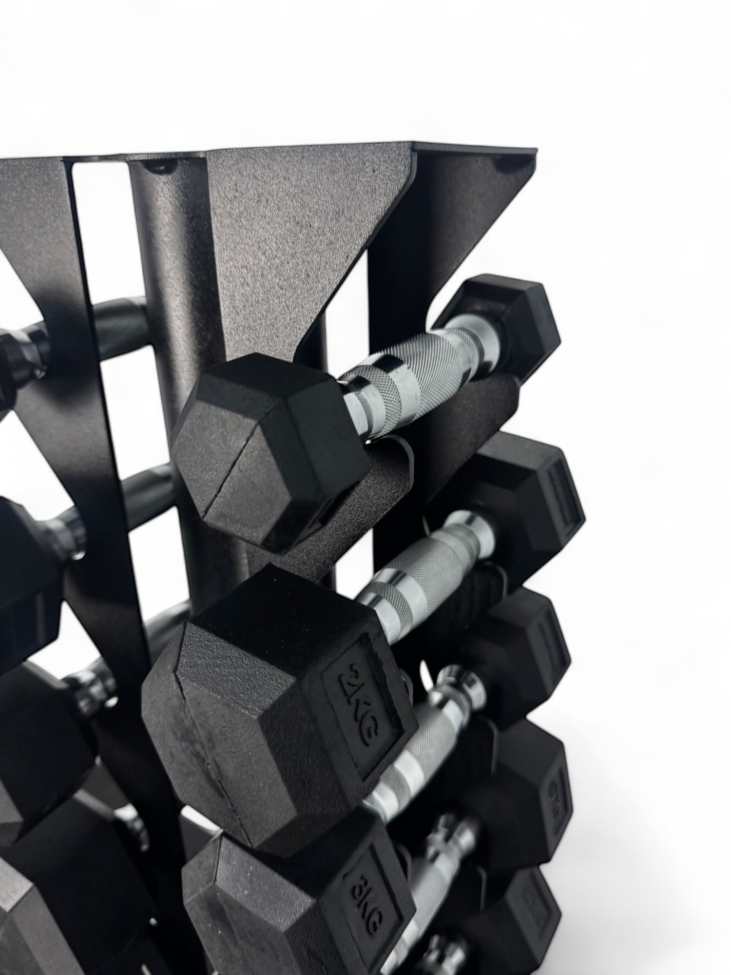 Com design vertical e encaixes precisos, o expositor facilita a organização e o manuseio dos halteres. Reduz o tempo de transição entre os treinos, evita bagunça e traz mais segurança para o ambiente. Estrutura firme, visual limpo e desempenho profissional.