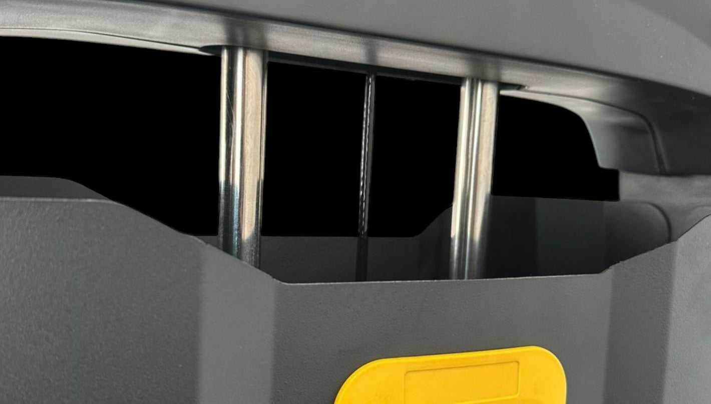 Estrutura metálica cortada a laser, que evita cortes nas mãos, e proporciona um toque agradável. Guias em aço inoxídavel garantindo qualidade e durabilidade.
