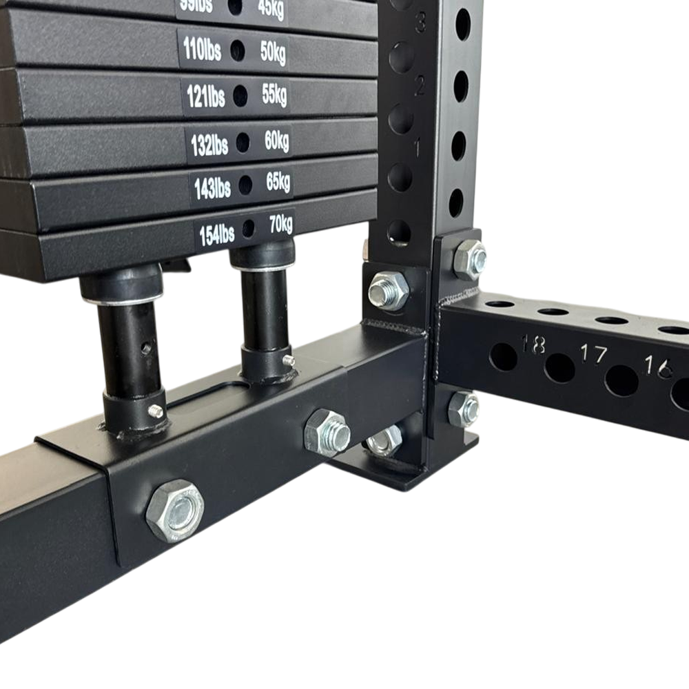 As torres de peso são cortadas a laser, o que não só assegura um design preciso e durável, mas também reduz até 50% o atrito durante a execução dos movimentos, proporcionando um treino mais suave e sem interrupções. Isso resulta em um desempenho mais eficiente e confortável para o usuário.