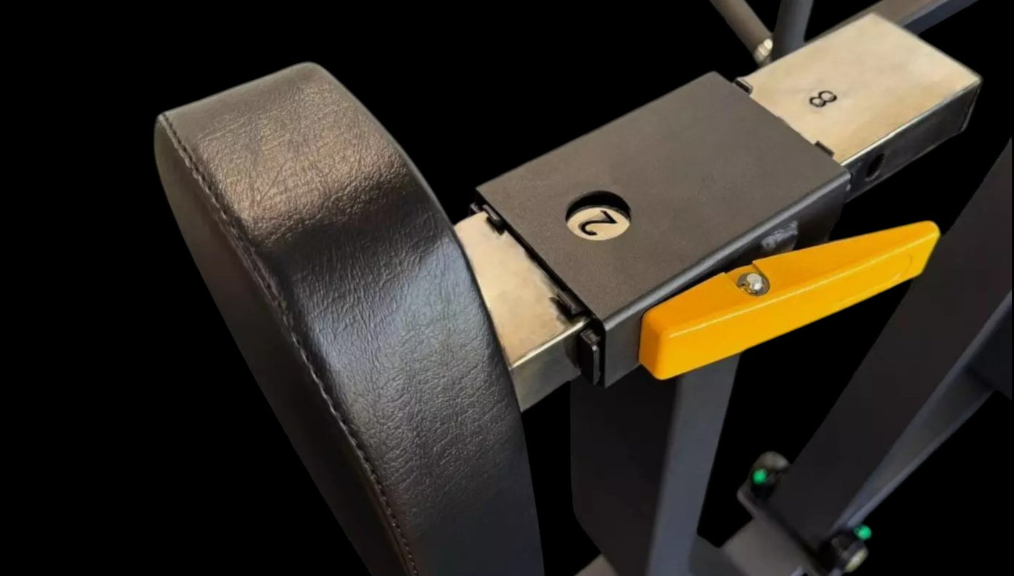 A máquina conta com ajuste de encosto, permitindo que você personalize a posição de acordo com sua altura e preferências. Isso oferece mais conforto e suporte durante os exercícios, além de garantir um movimento mais natural e eficiente.