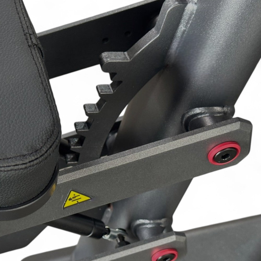 O assento com regulagem em 8 níveis de altura permite um ajuste preciso à estatura de cada usuário, assegurando estabilidade e eficiência nos movimentos.