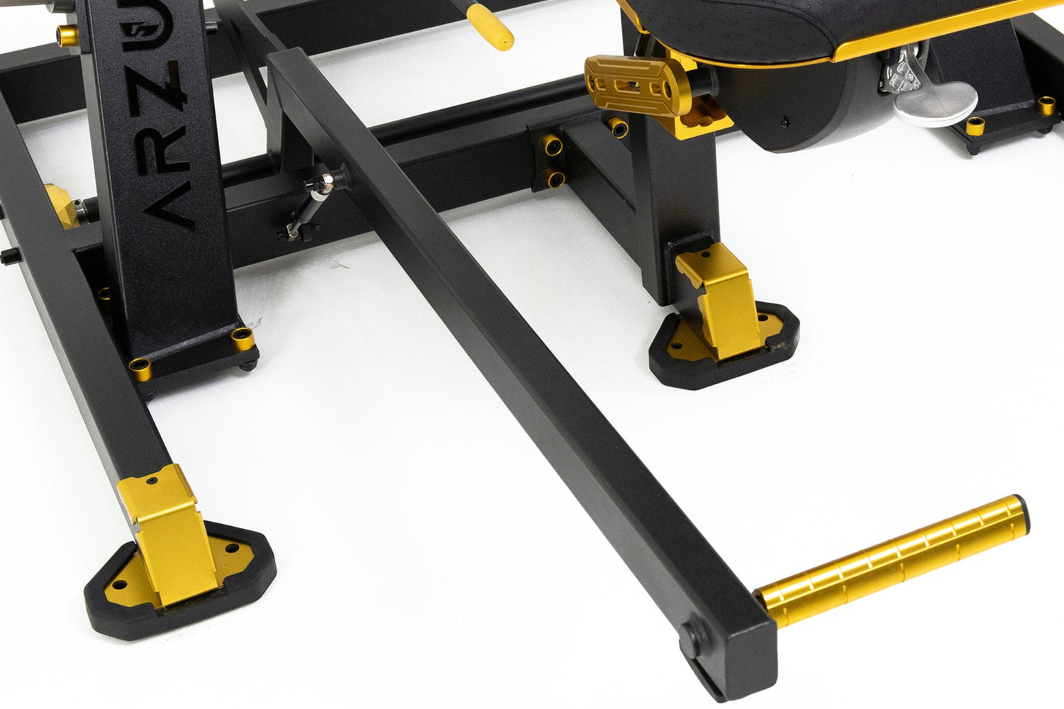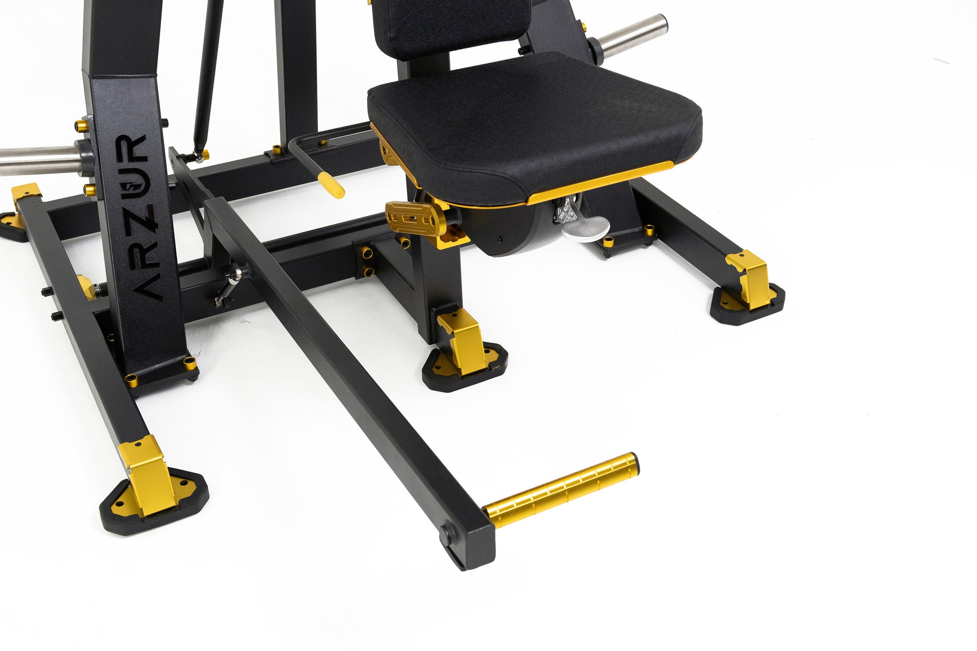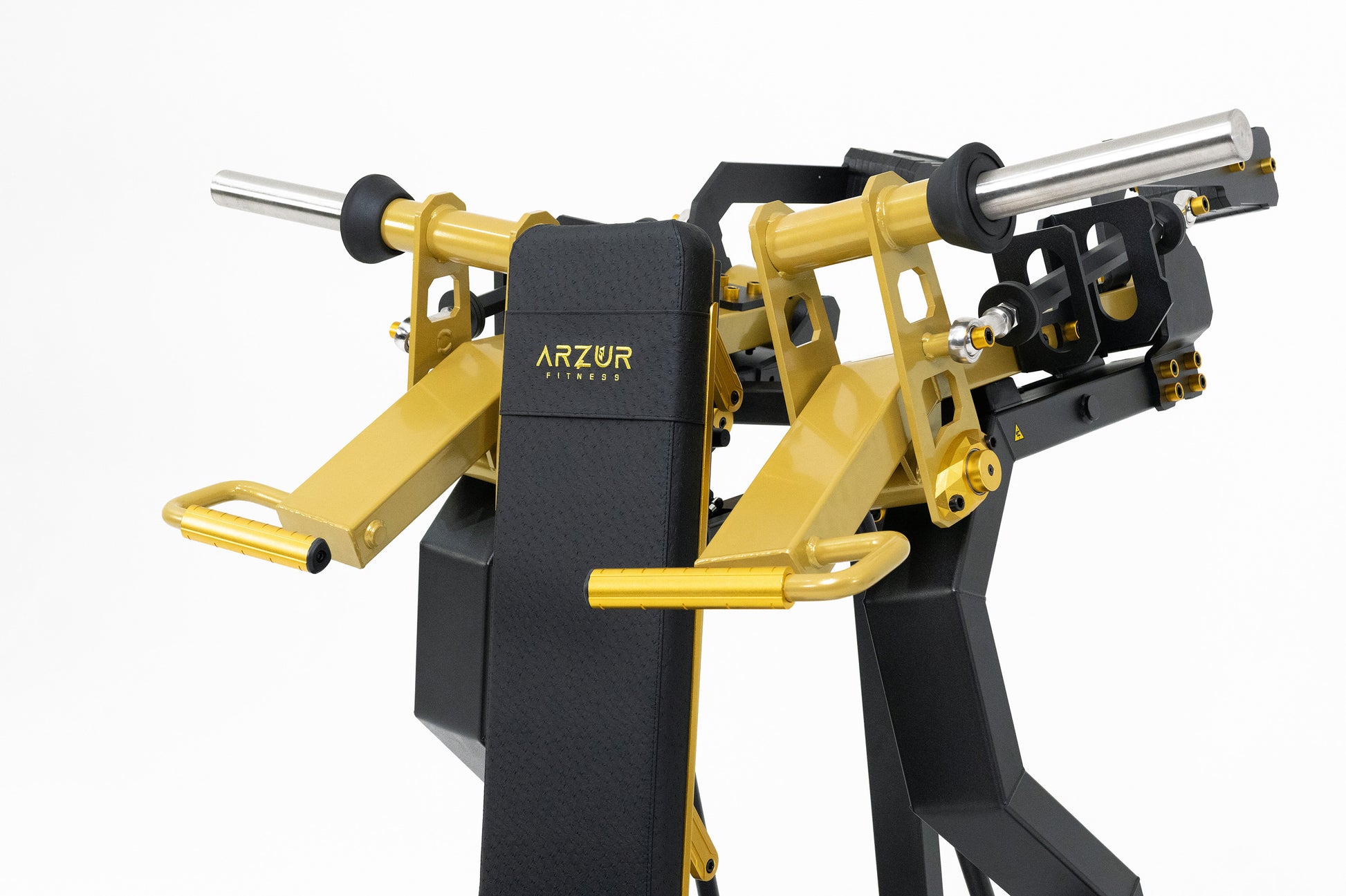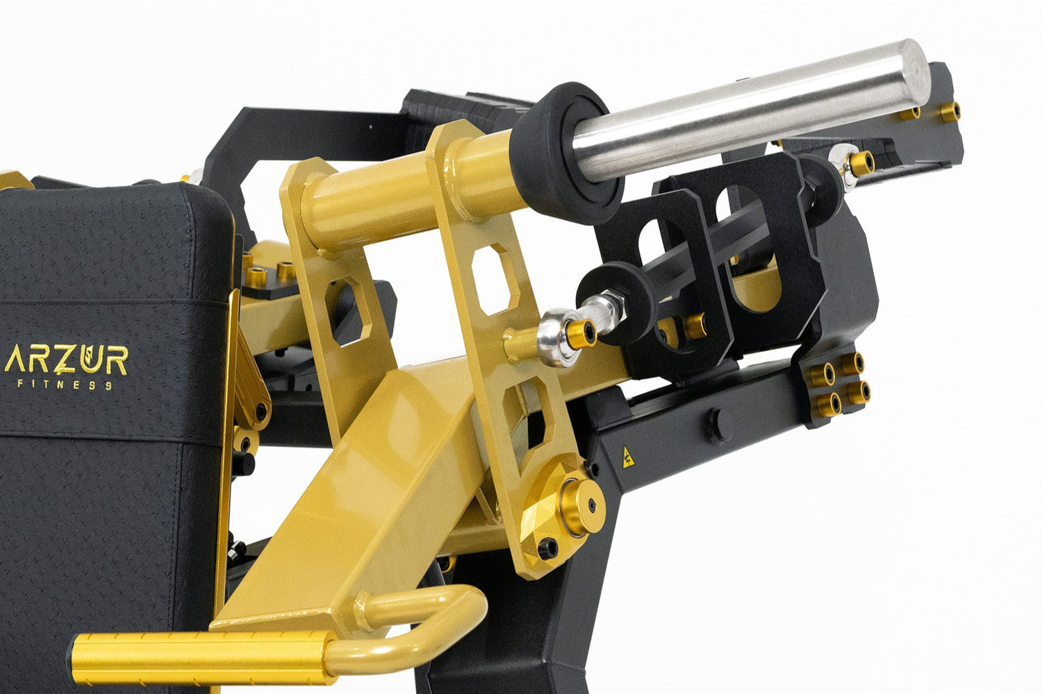 A Linha Robust não apenas suporta sua carga — ela responde a ela com inteligência. Os pistões estrategicamente posicionados garantem uma biomecânica fluida, silenciosa e extremamente confortável, mesmo sob cargas elevadas. Cada movimento é guiado com controle, evitando impactos desnecessários e maximizando a performance. Qual é a função dele? Durante a execução do exercício, o pistão promove o afastamento progressivo da anilha em relação ao eixo da máquina. Esse deslocamento gera uma tensão crescente ao longo do movimento. Assim, no ponto máximo de contração muscular, é justamente onde ocorre a maior tensão, potencializando o estímulo e a eficiência do exercício.”