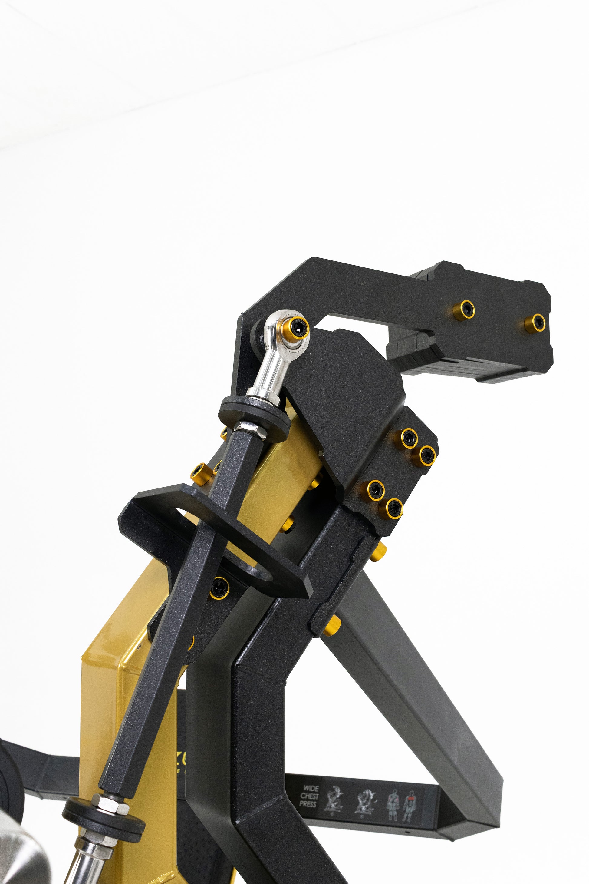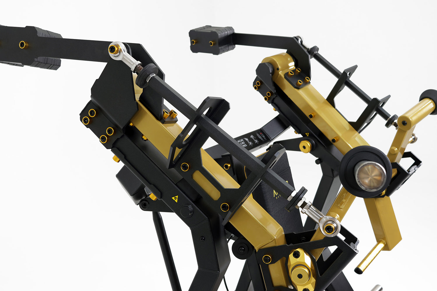Seus estofados são confeccionados com material de alta densidade, possuem design anatômico, relevo funcional e acabamento sofisticado.O sistema de regulagens articuladas permite adaptação milimétrica ao corpo do atleta, com braços usinados em alumínio e mobilidade suave. Uma fusão entre tecnologia e luxo.