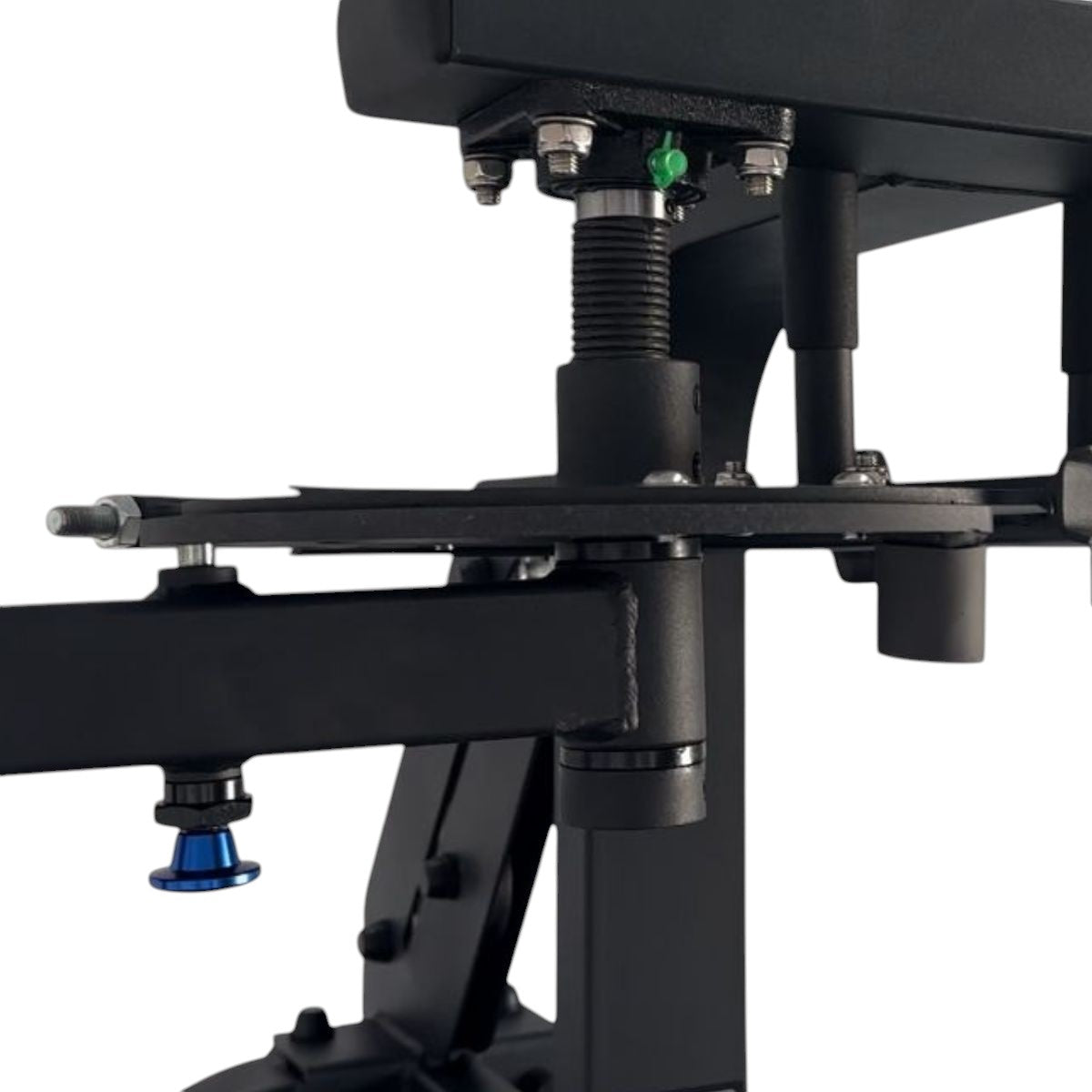 A estrutura principal é feita de tubos de alta qualidade soldados de aço sólido. A tecnologia de pulverização eletrostática de pó termoendurecível torna a superfície fosca , garante cor uniforme e proteção contra ferrugem. Hastes de alta qualidade reduzem o atrito e garantem movimento contínuo sem emperramento.