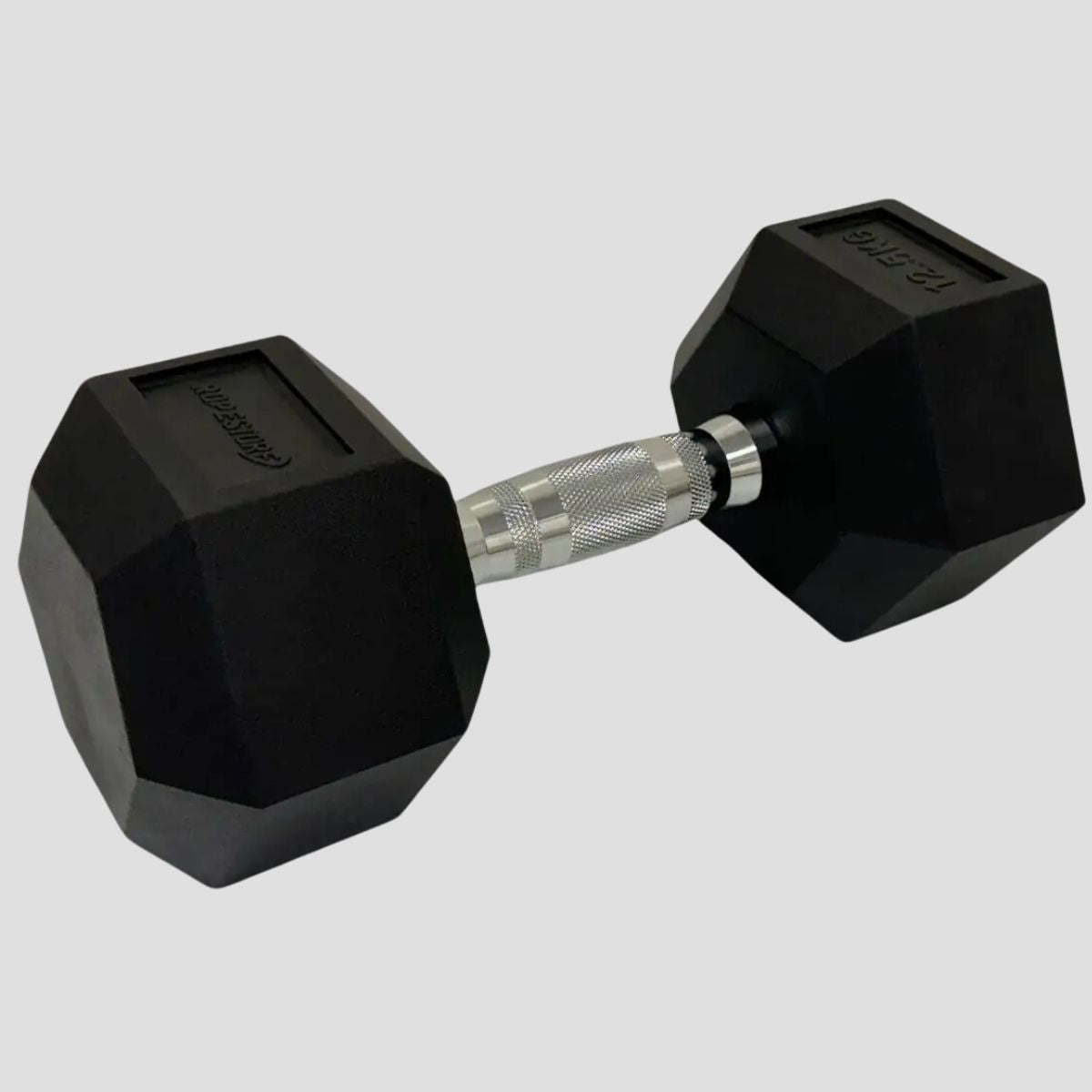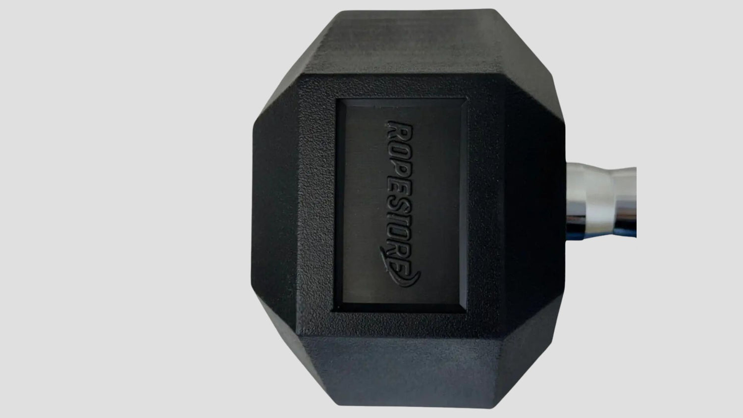Partes laterais em hexagonal, que garante uma série de benefícios, entre eles a sua facilidade para guarda, como em armários ou até mesmo na hora do exercício, quando você deixa os dumbells no chão entre as pausas da série para ele não sair rolando.