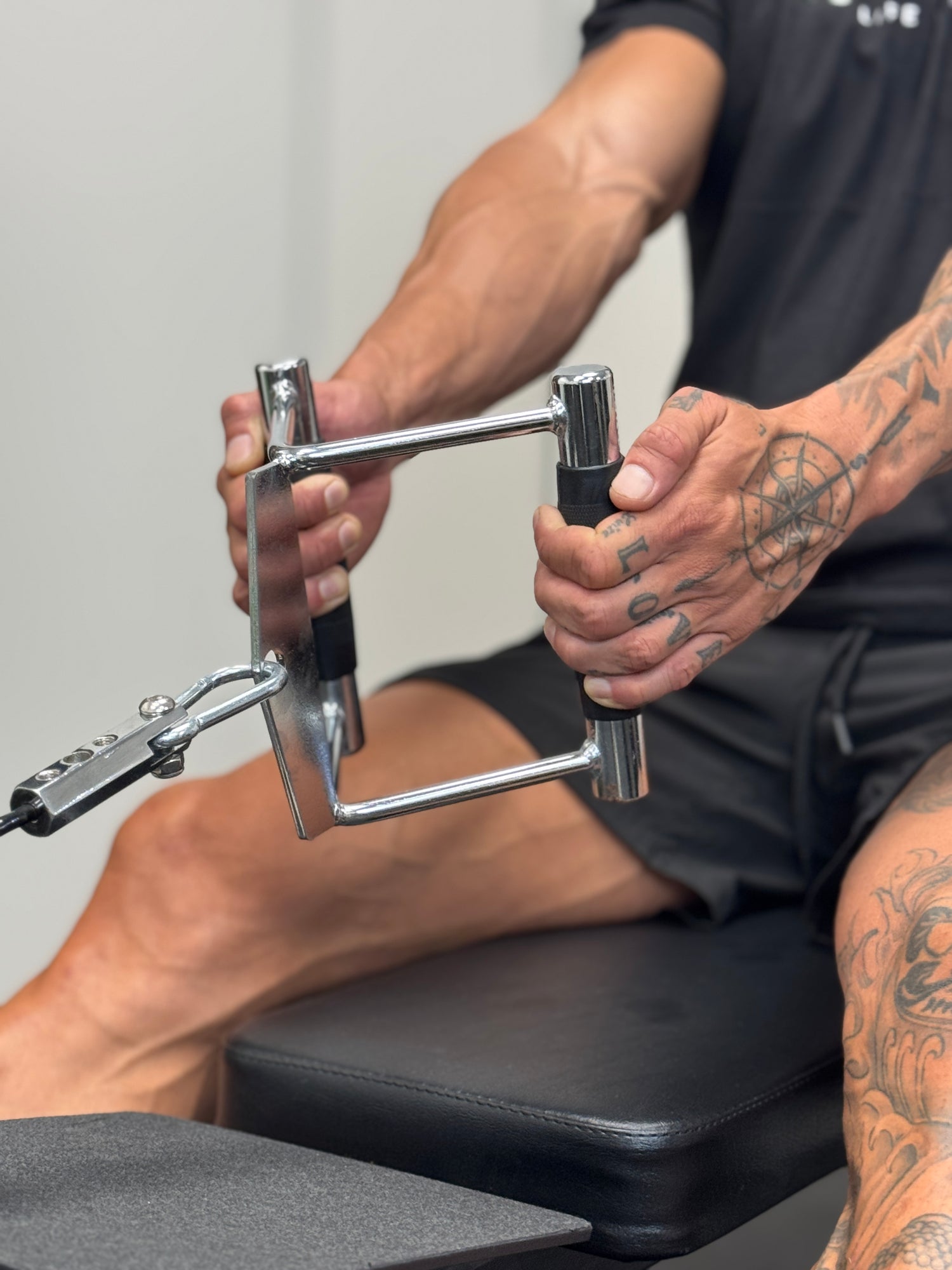 Oferece aderência superior e conforto durante os treinos de costas e tríceps. Seu acabamento cromado garante alta durabilidade e um visual profissional, enquanto a pegada emborrachada evita deslizes e proporciona total controle nos movimentos. Um acessório indispensável para quem busca intensidade e segurança nos exercícios de puxada.