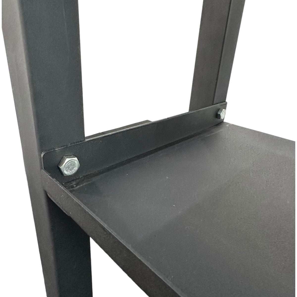 Além de ser uma opção prática para organizar seus materiais, o design compacto e eficiente do suporte permite que ele ocupe pouco espaço e maximize a área útil do seu treino, facilitando o acesso rápido aos itens armazenados. As prateleiras são espaçosas o suficiente para acomodar diferentes tipos de equipamentos.