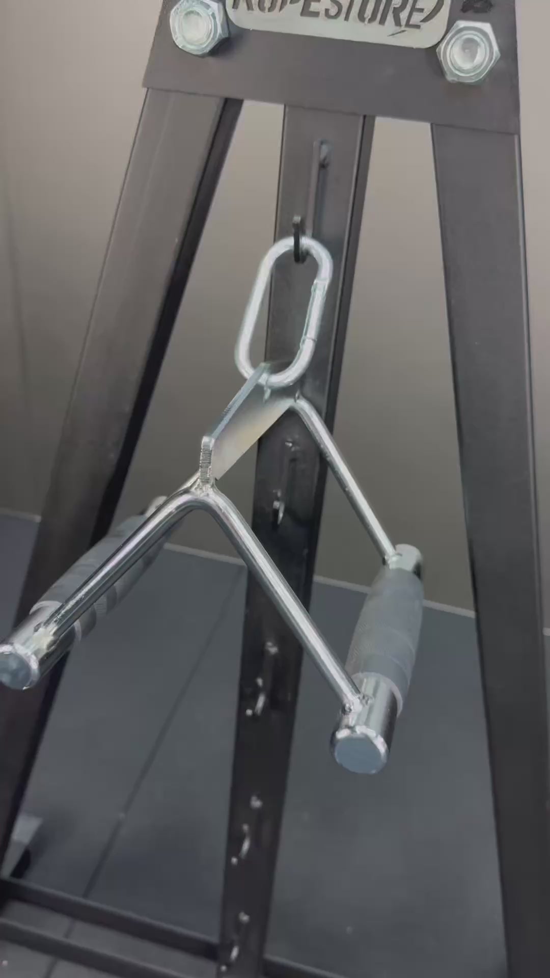 Oferece aderência superior e conforto durante os treinos de costas e tríceps. Seu acabamento cromado garante alta durabilidade e um visual profissional, enquanto a pegada emborrachada evita deslizes e proporciona total controle nos movimentos. Um acessório indispensável para quem busca intensidade e segurança nos exercícios de puxada.