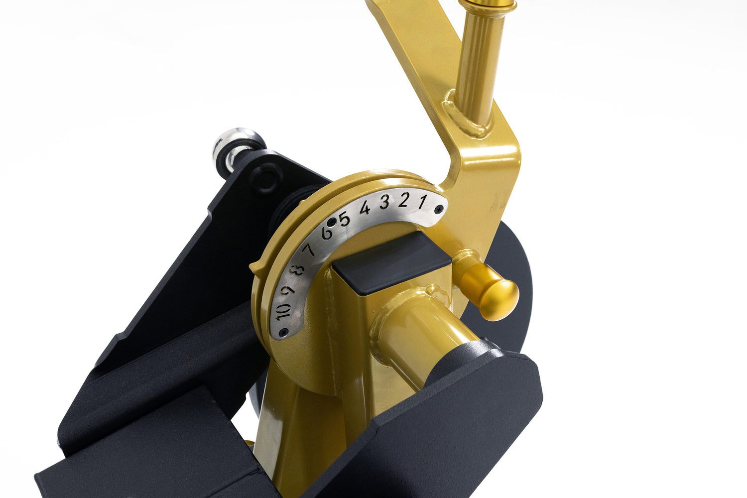 O encosto conta com ajuste de inclinação de fácil acesso, permitindo adaptar a máquina à anatomia e à necessidade de cada aluno com agilidade e segurança.