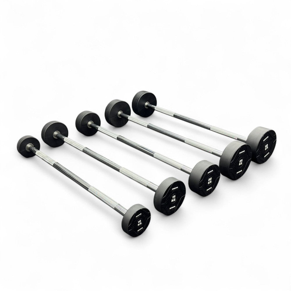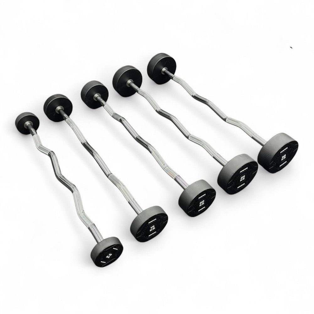 Barra Reta (Straight Bar): Ideal para exercícios que exigem maior amplitude e ativação direta, como supino, remada, desenvolvimento e levantamento terra. A pegada reta proporciona estabilidade e foco total nos grupos musculares principais.