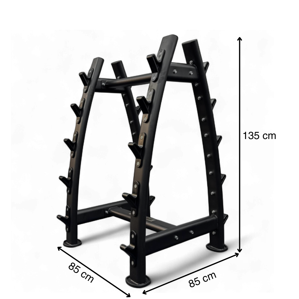 Suporte exclusivo para acomodação das barras em formato vertical, otimizando espaço e facilitando o acesso. Estrutura sólida com pintura eletrostática e design moderno.
