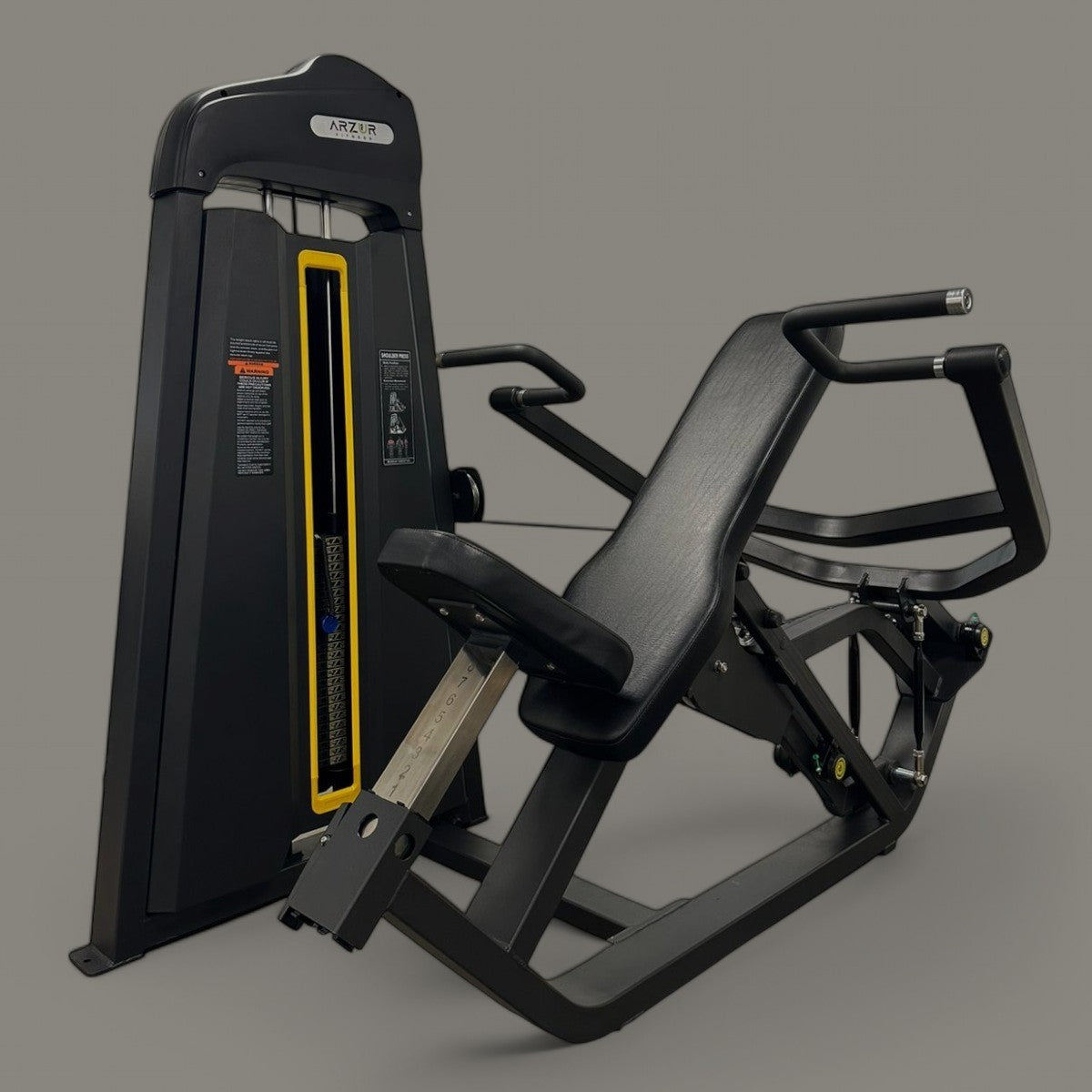 A máquina de Desenvolvimento de Ombro Shoulder Press usa uma almofada traseira declinada com um assento ajustável para melhor estabilizar o tronco enquanto se adapta a usuários de diferentes tamanhos. O aparelho também é equipado com alças confortáveis ​​com diferentes posições, o que aumenta o conforto dos praticantes e a variedade de exercícios.