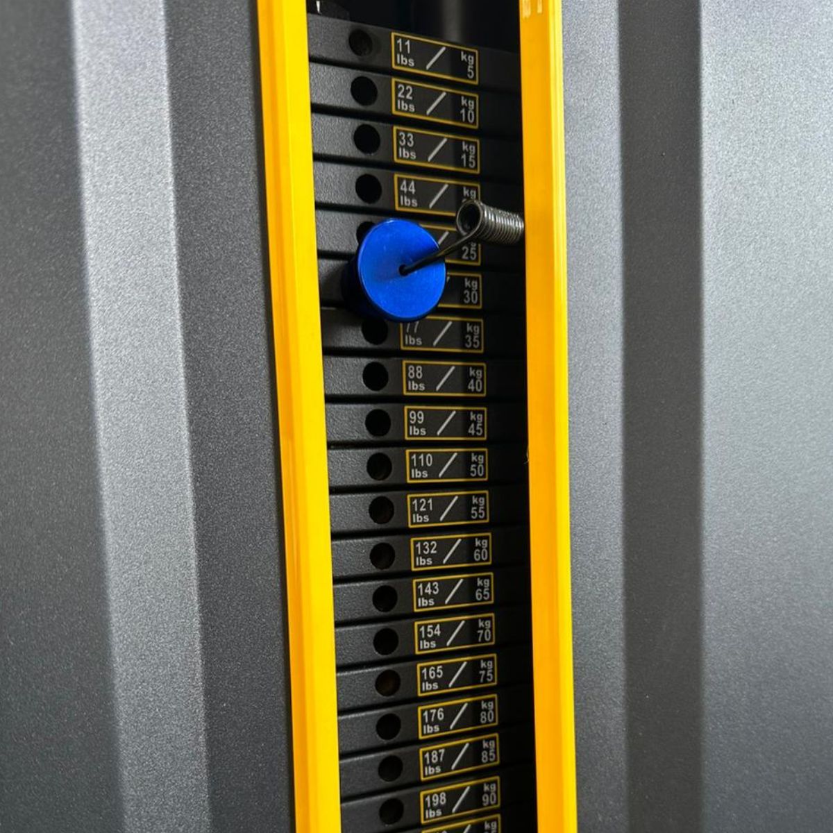 Com bateria de peso de 130 kg e pinos magnéticos de Seleção de Peso Facilitam o encaixe de pesos e previne acidentes, proporcionando mais segurança durante o uso.