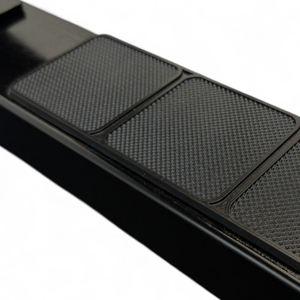 Nada de folga, nada de instabilidade. O conjunto com buchas metálicas, parafusos de alta resistência e duplo apoio lateral foi projetado para suportar cargas elevadas sem perder precisão no movimento.